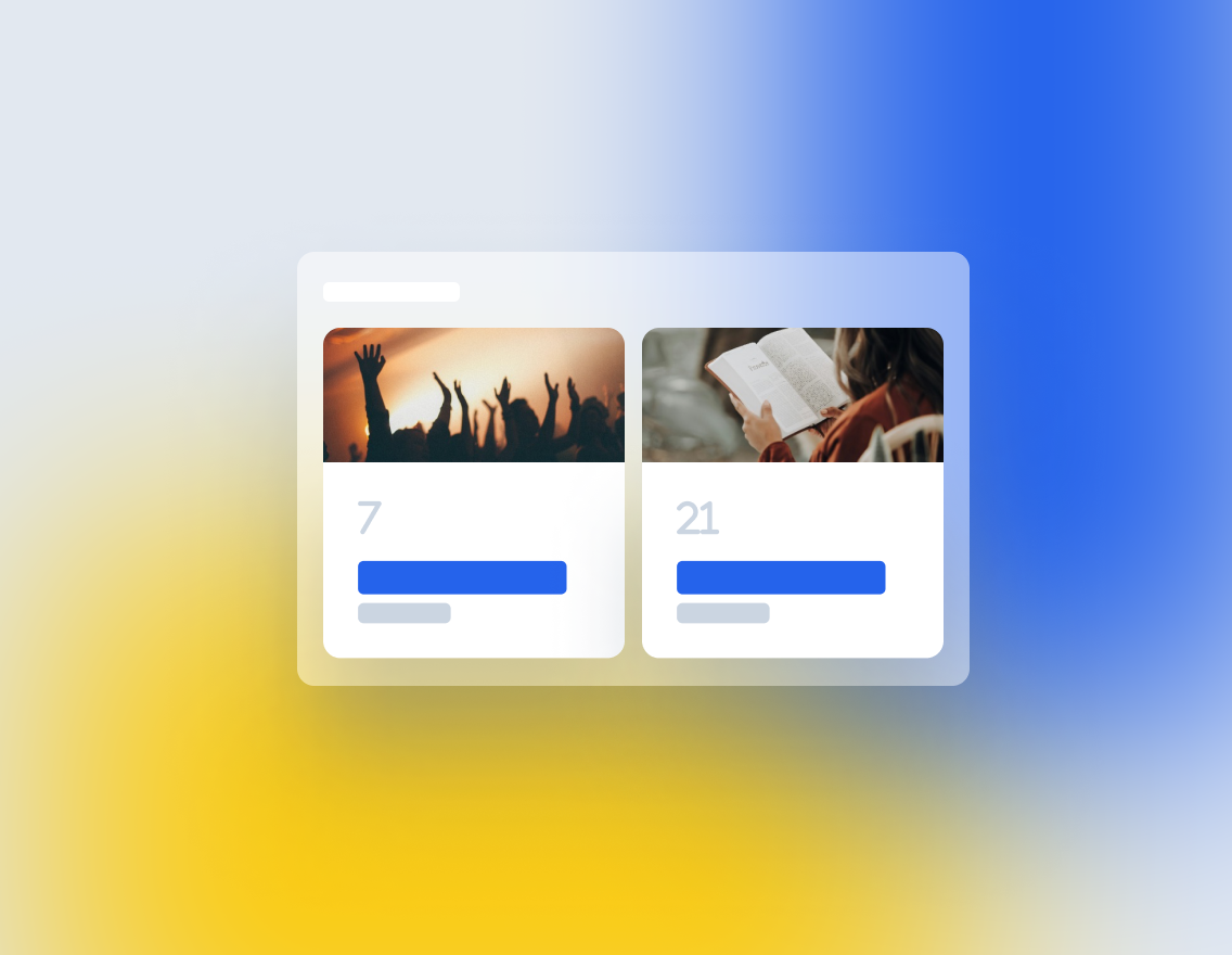 Verabschiede dich von veralteten Websites, Homepages, hohen Kosten und komplizierten Prozessen. Mit unserem Baukasten kannst du mühelos auf eure vielfältigen Angebote und Veranstaltungen aufmerksam machen, Predigten und andere Inhalte teilen und Besucher auf ihrem Weg in eure Gemeinde begleiten.